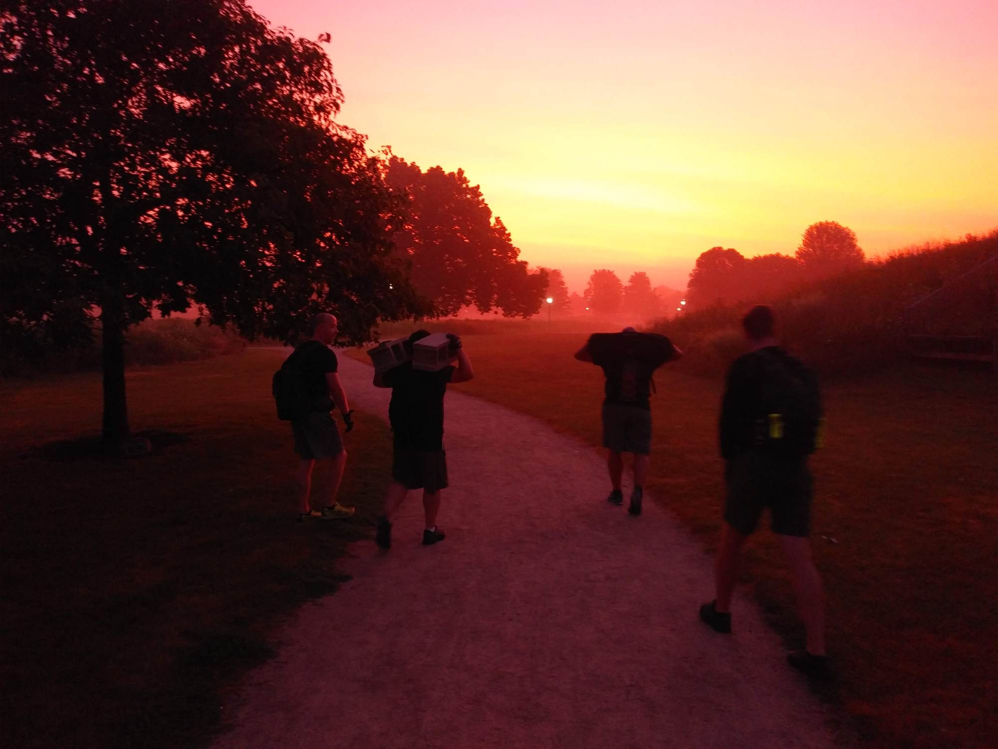 5:30 saw 4 PAX (Archive, Noodles, Triple XXX, Cap’n Crunch) assembled at MASTODON with TBTF coming in hot just as we were talking through the plans. The persistent thick fog at the AO meant that the initial plan for a Mata Mile was scrapped because it would have required some visibility across the lake. In it’s place we opted for the Hammer workout with a sandbag swap in place of buddy carrys.