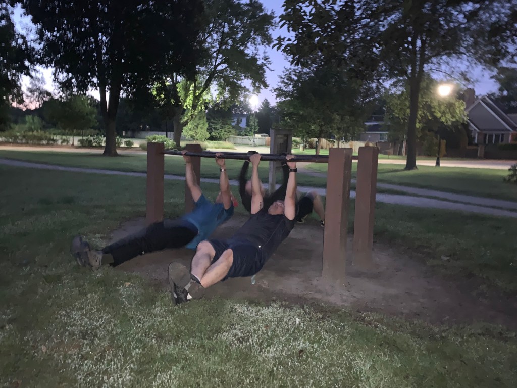 Thang 1: IC Pull ups/ Partner Assisted: 3 sets of 10 followed by last man standing or hanging contest. This contest proved extremely short.
