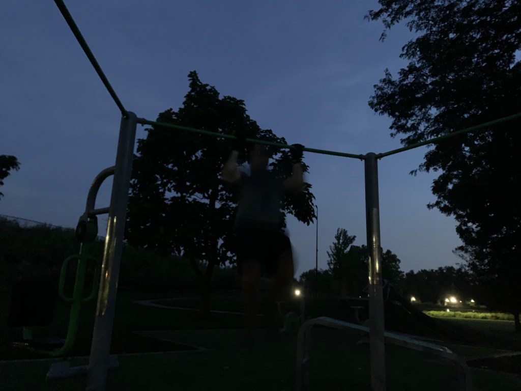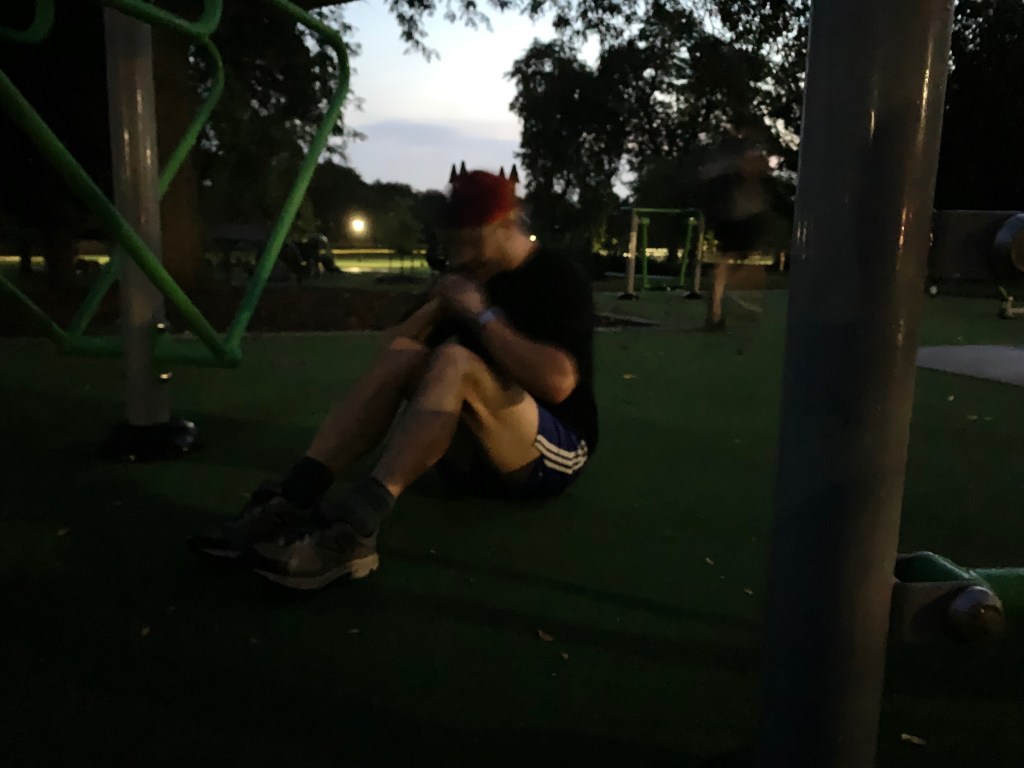 Conclusion: This truly was a pretty easy workout. But it is important to adjust the tempo now and again. I think we all had fun and still got some good cardio and were able to work on pull-ups, which no one is terrific at. Also it was good to provide some focus to the abs, and help get the lactic acid out of the legs, through the jog. Overall, it was nice to be outside, together, and getting low intensity reps in.