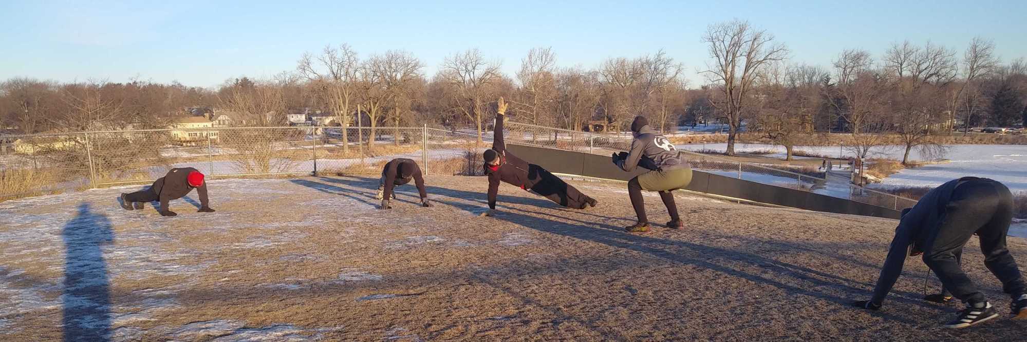 Captain Crunch took us on a surprise “no parameters” run across the frozen lake, which included Ninnie Knockers and burpees on the ice.