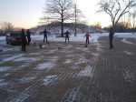 2 teams with sandbags on a rope and pulled them around the ice. Walking was quite slippery. We tried crawling, which didn’t work well at all. We made it one lap around the ice before moving on to the next thang.