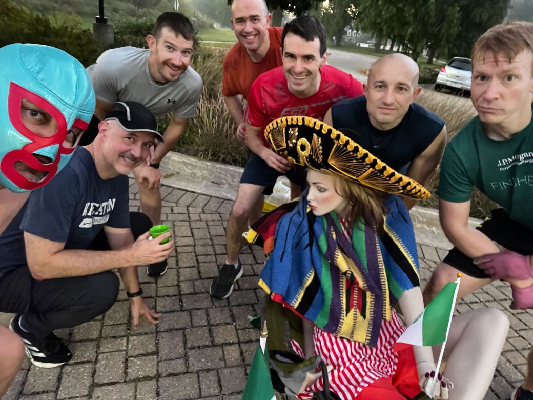 La Cucaracha (the Mariachis)- Crab Walk to path – do 11 Merkins, Bear Crawl back – repeat.