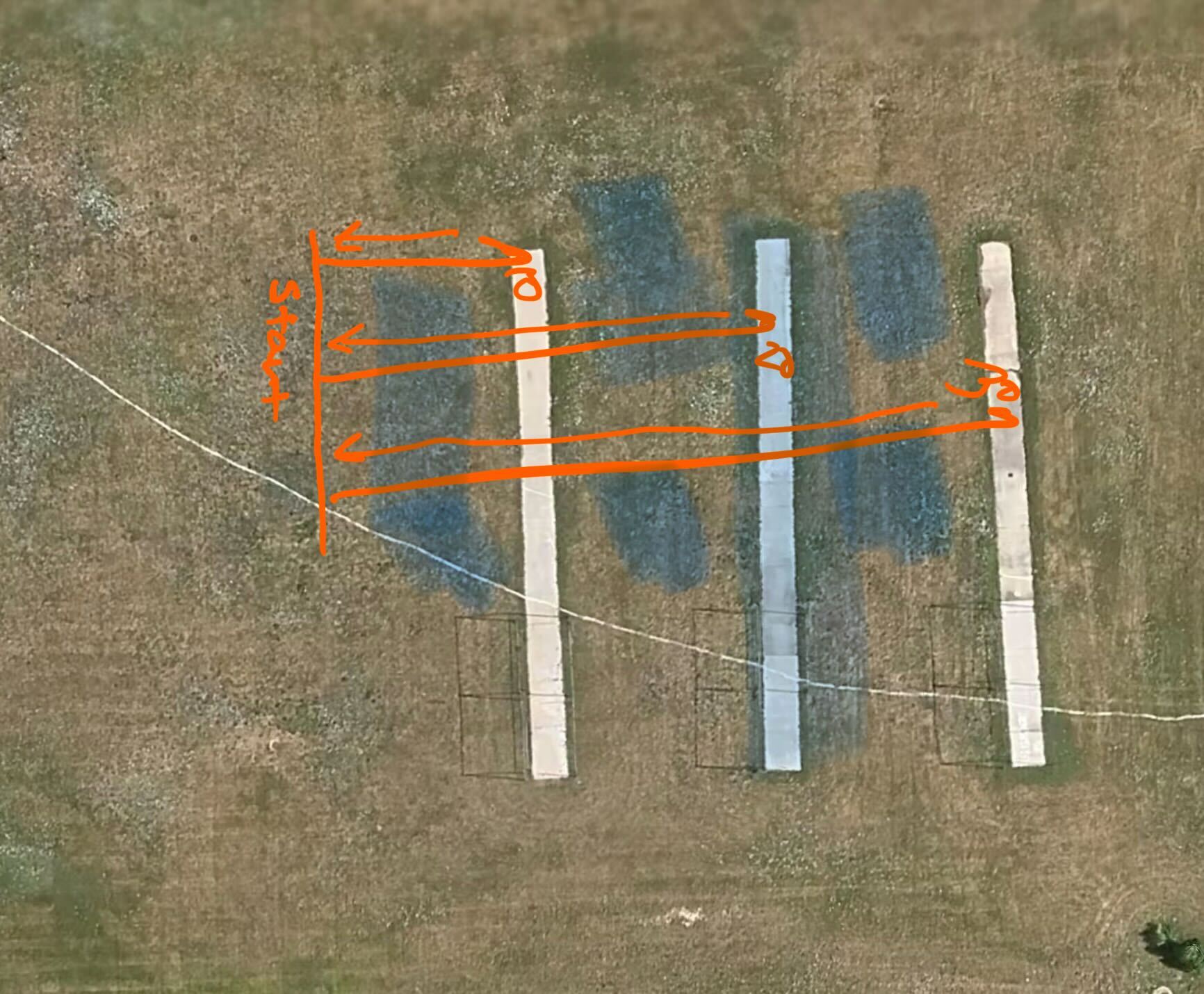 With each round, travel to the concrete pitch do 10 reps of an exercise, run back to the start, then travel to the next pitch, do 20 reps, run back, travel to the third pitch and do 30 reps, run back.