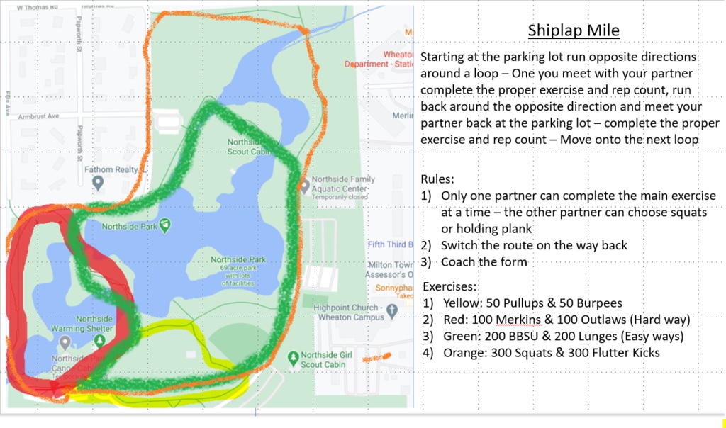 It was a brisk morning as your QIC showed up to the AO promptly at 5:00AM to prep for the 5:30 beatdown. I was able to find some dry side walk to write the beatdown on and scope out the AO to make sure we had ample amount of footing for today’s Thang. I felt extra motivated and wanted to make sure the PAX completed plenty of burpees to make sure we didn’t fall behind in the MABA challenge.
