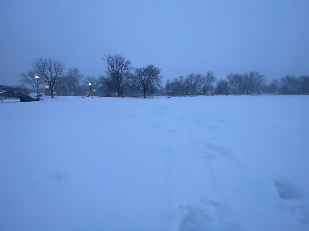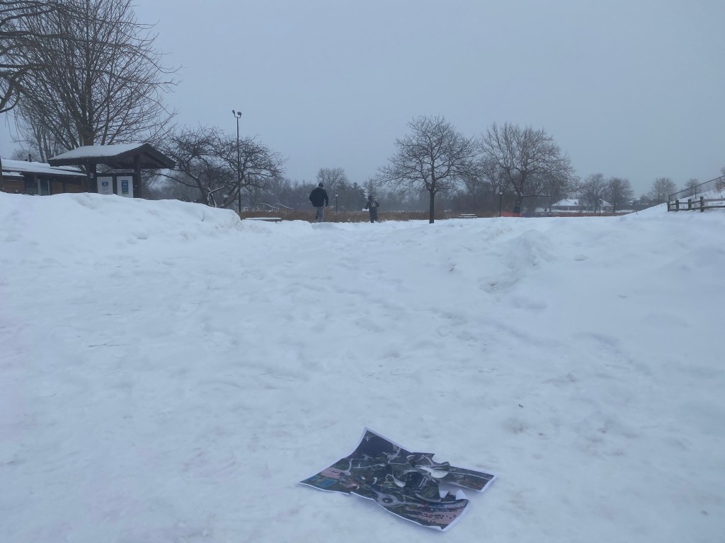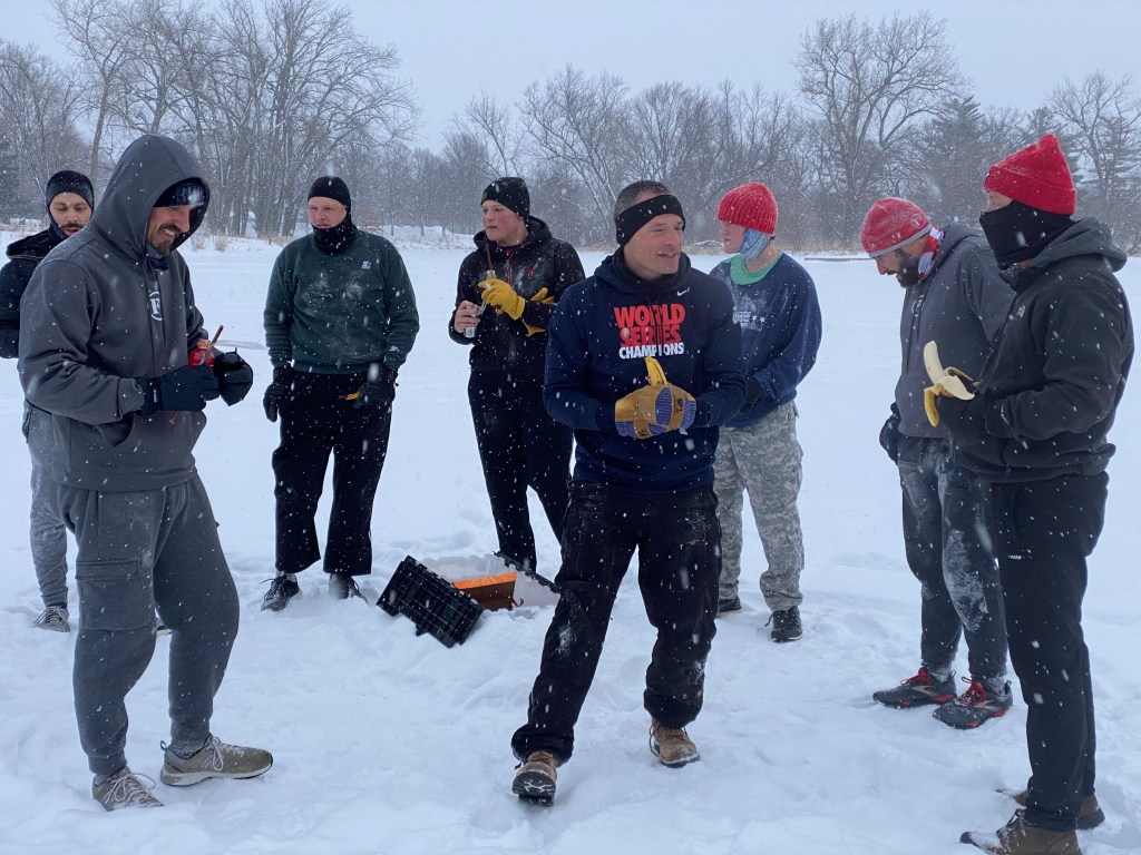 Pre Workout: Treasure is buried under snow in the middle of a frozen lake.