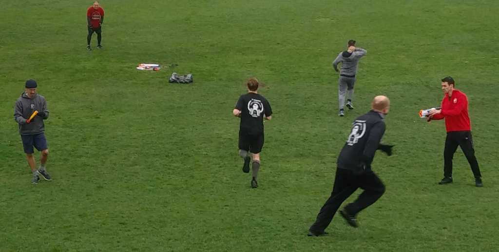 In the end, Archive’s team was a strong contender, both in strategy and exercises. Sparrows team (hats), proved a competent defender. Each team stole one bag, defended one bag, and made it across the park, for a tie score of 3:3.