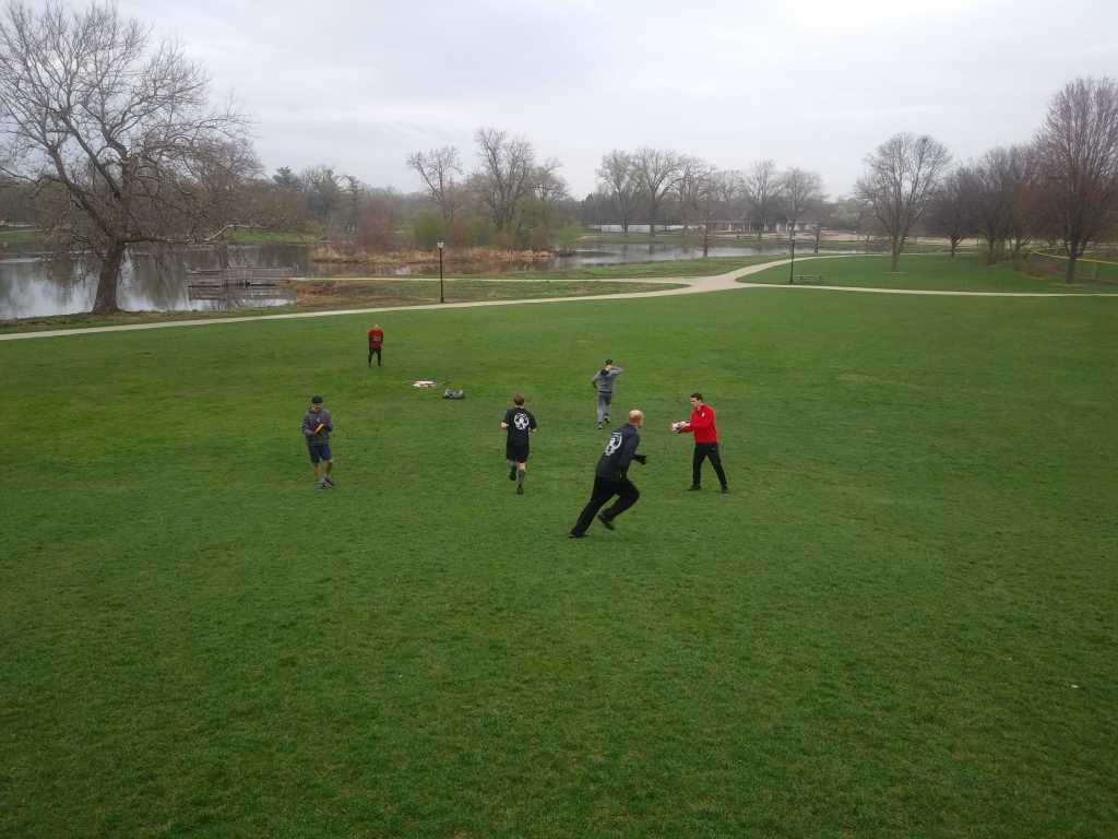 At the start of the game, the ruckers on each team will carry their sandbags away from the starting bridge all the way to the other end of the park. If all pax reach the other end, they earn one point (In hindsight, this was probably unneccessary. It did create a more traditional ruck feel, but used up most of the time that could have been spent playing the strategy game).