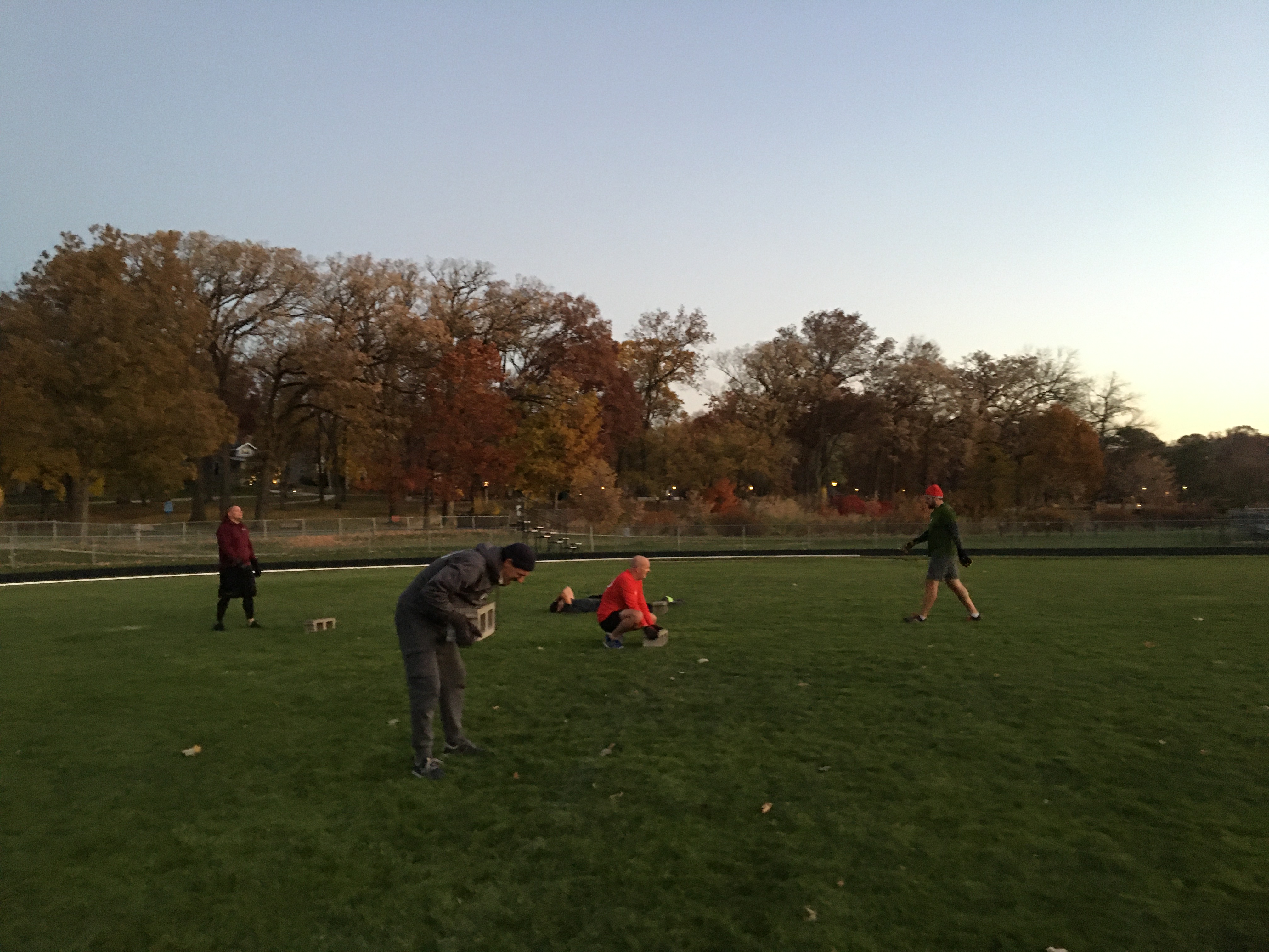 14 weary-eyed PAX rolled in to AO Tar Pit at 5:30 for a post-election day beatdown. Shiplap, Tortuga, SAGA, Panhandle, Katniss, Banks, Captain Crunch, Big Mac, Sparrow, Cookies, Da Vinci, T-bone, Noodles and Gummi Bear. Many reported turning in late the night before as they anxiously awaited the election results that are still outstanding. After planting some flags, we rolled into the warm-o-rama: