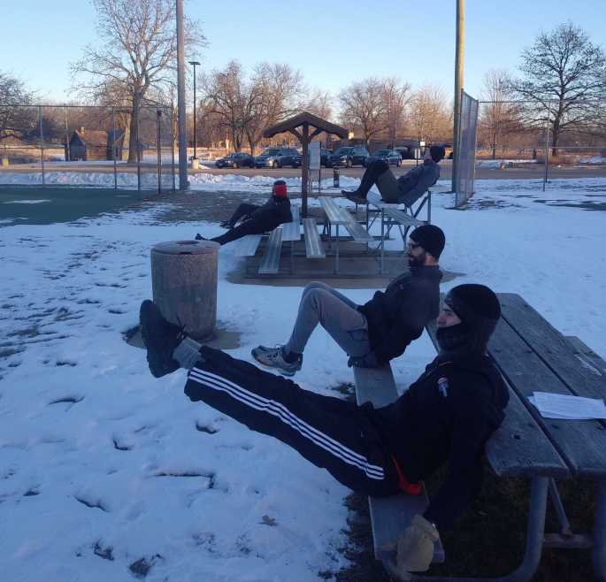 Captain Crunch took us on a surprise “no parameters” run across the frozen lake, which included Ninnie Knockers and burpees on the ice.